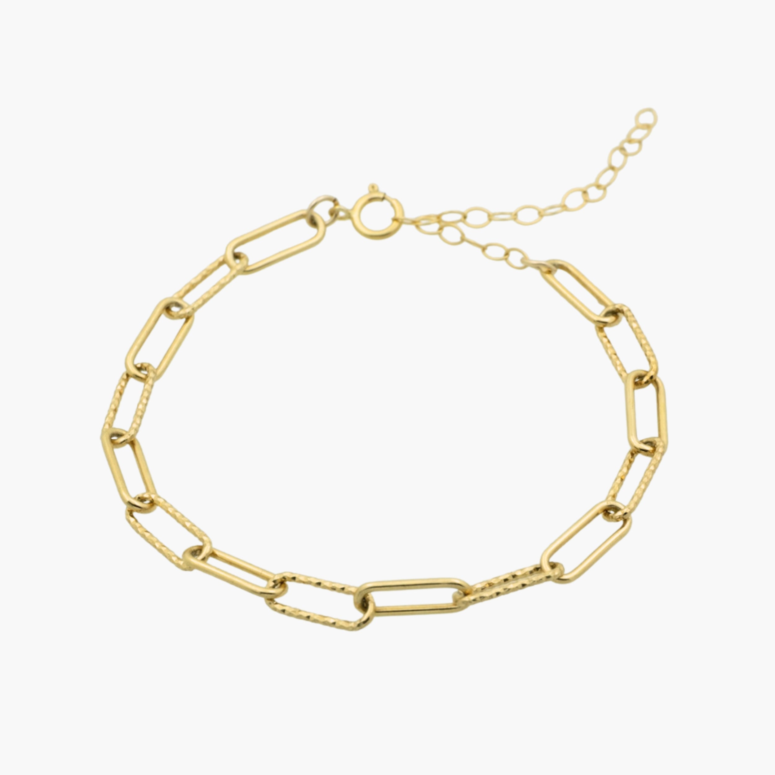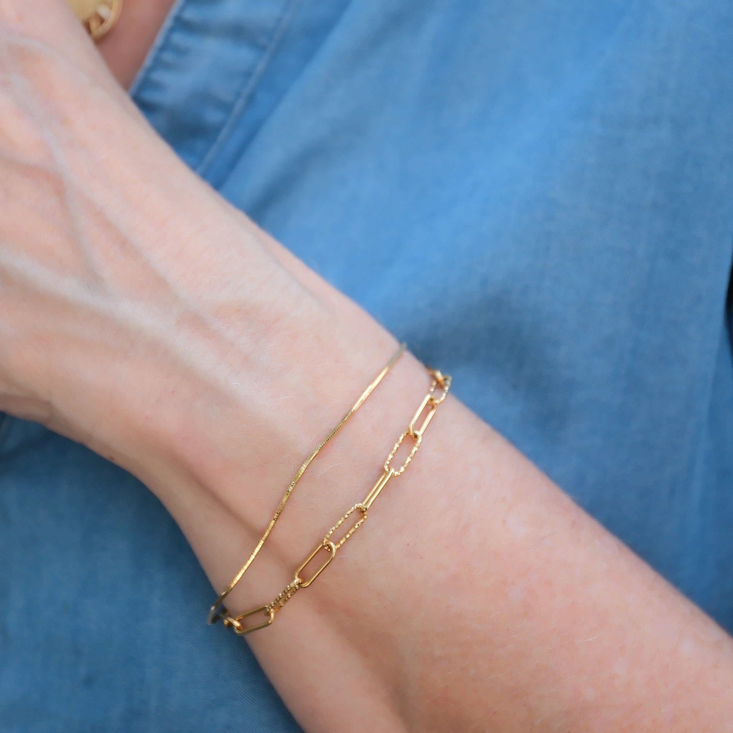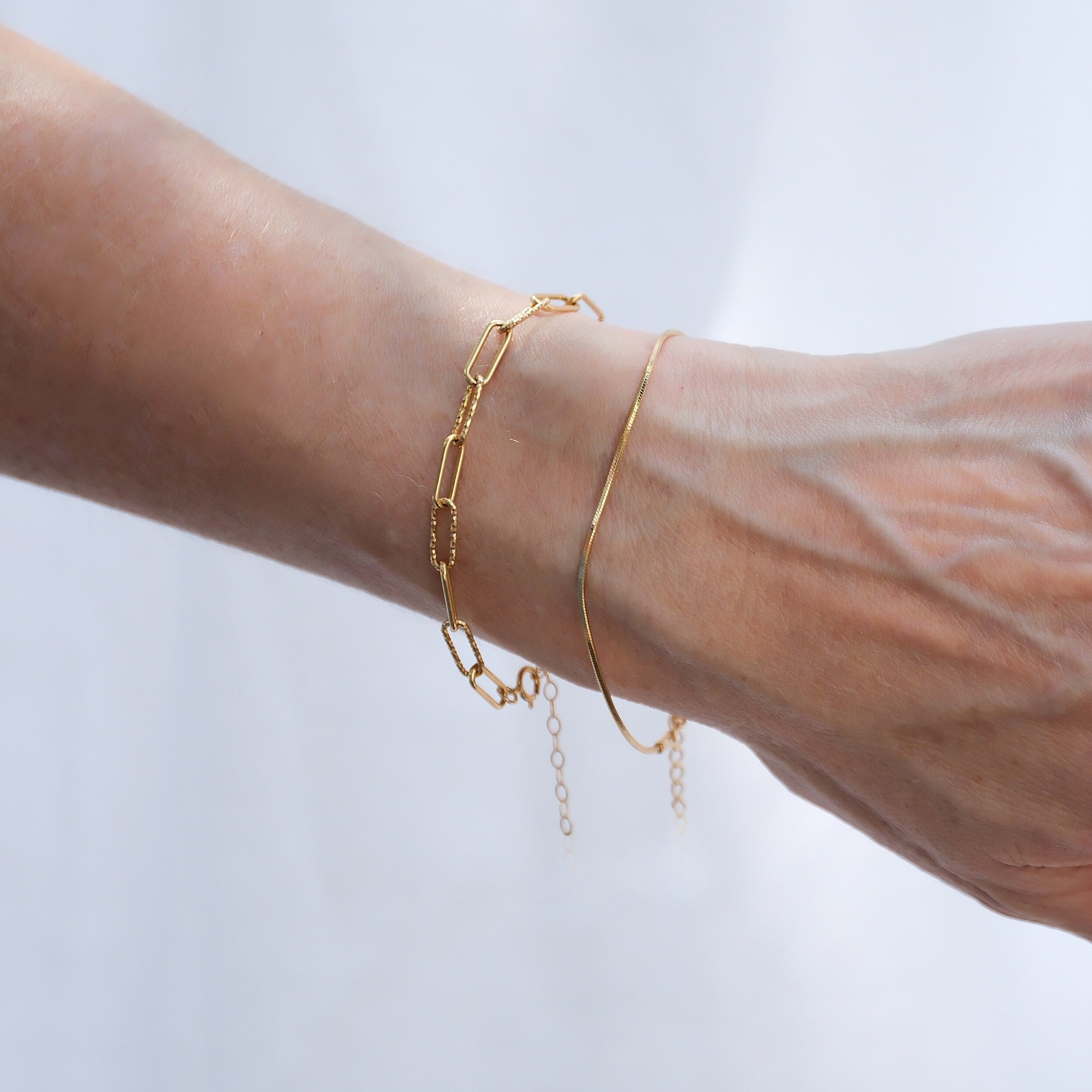 Upgrade your bracelet game with our Textured Paperclip Chain Bracelet, a sleek and contemporary twist on a classic chain design. Each bracelet features alternating smooth and textured links, creating a subtle, eye-catching pattern that adds dimension and elegance to your wrist.