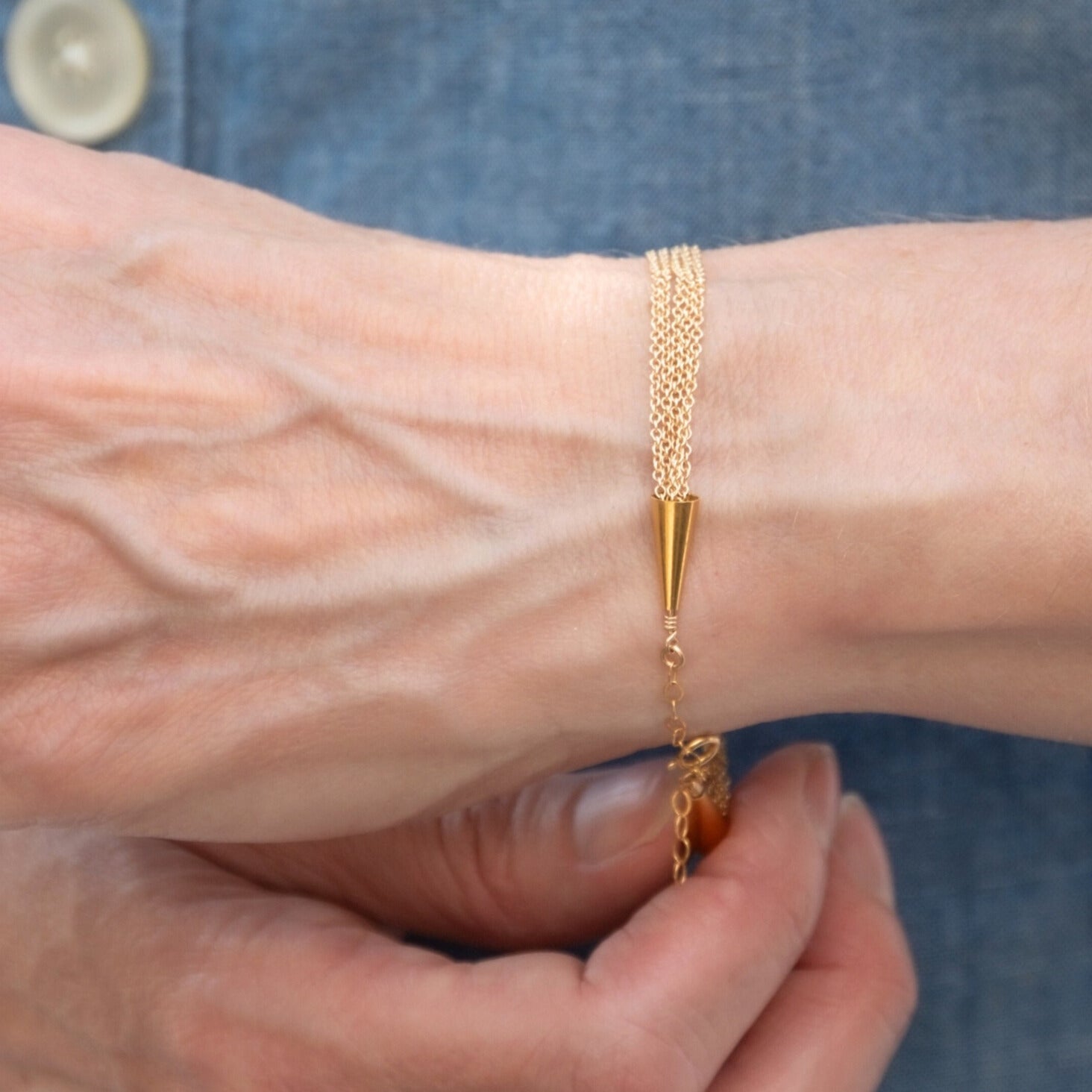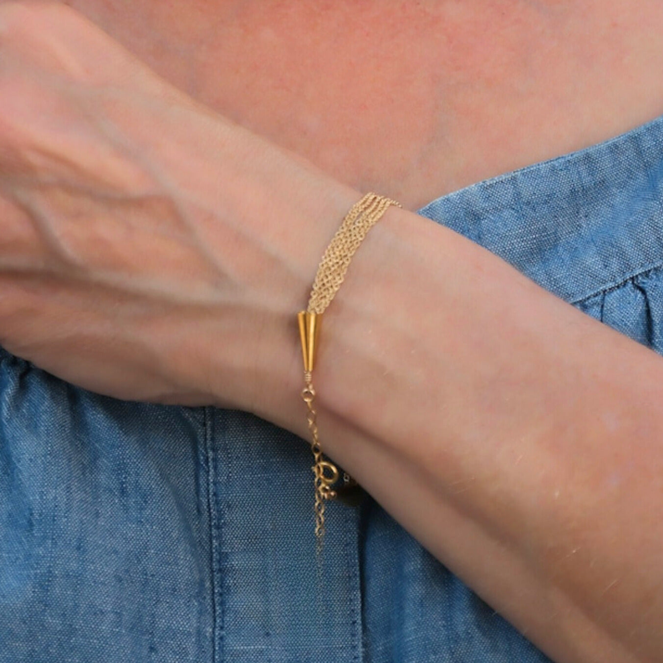 Add instant sophistication to your wrist with our gold filled Multi-Strand Chain Bracelet. This elegant piece features five delicate, gold filled strands that drape beautifully together, creating the perfect layered look—all in one bracelet.