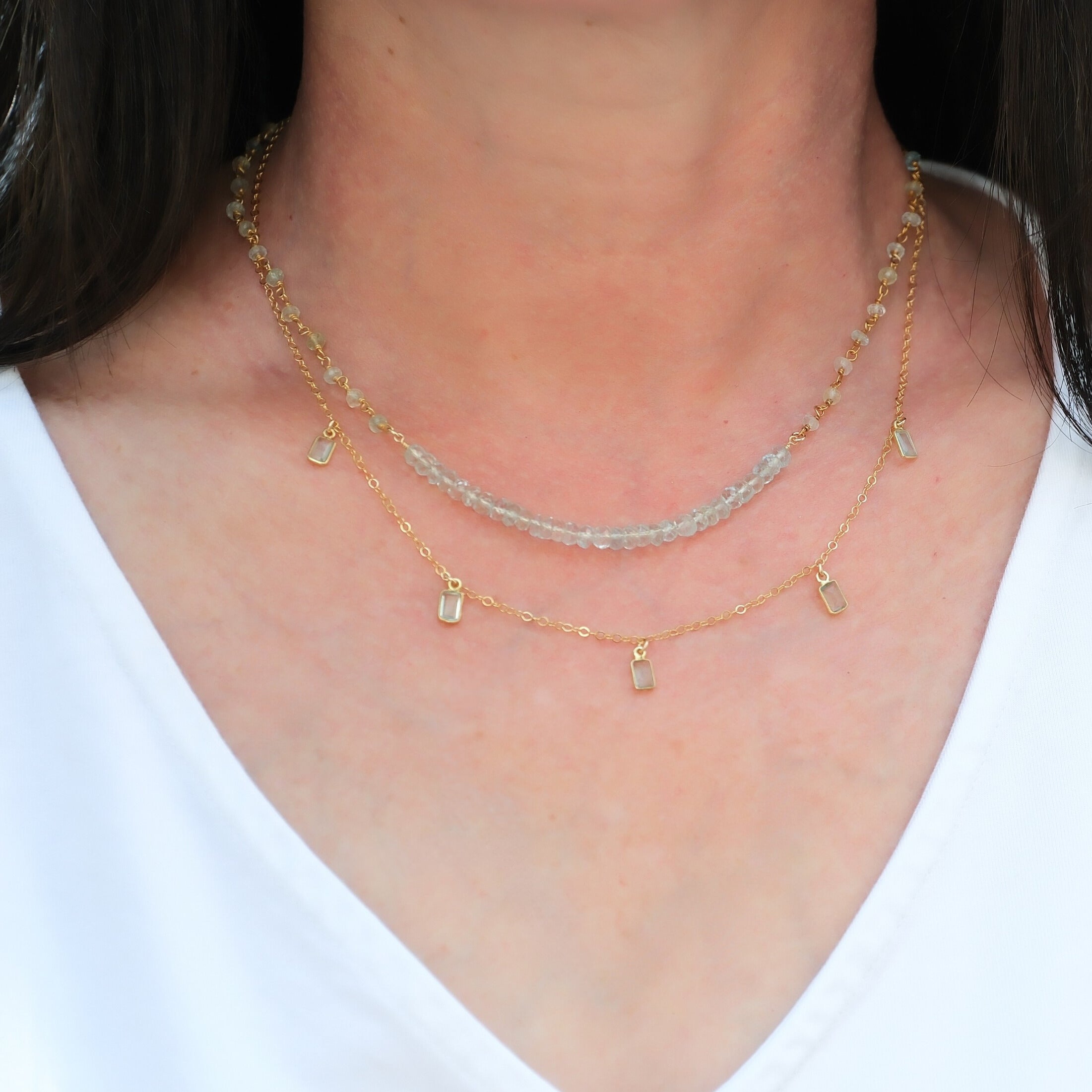 - 14k gold filled chain with vermeil aquamarine gemstones