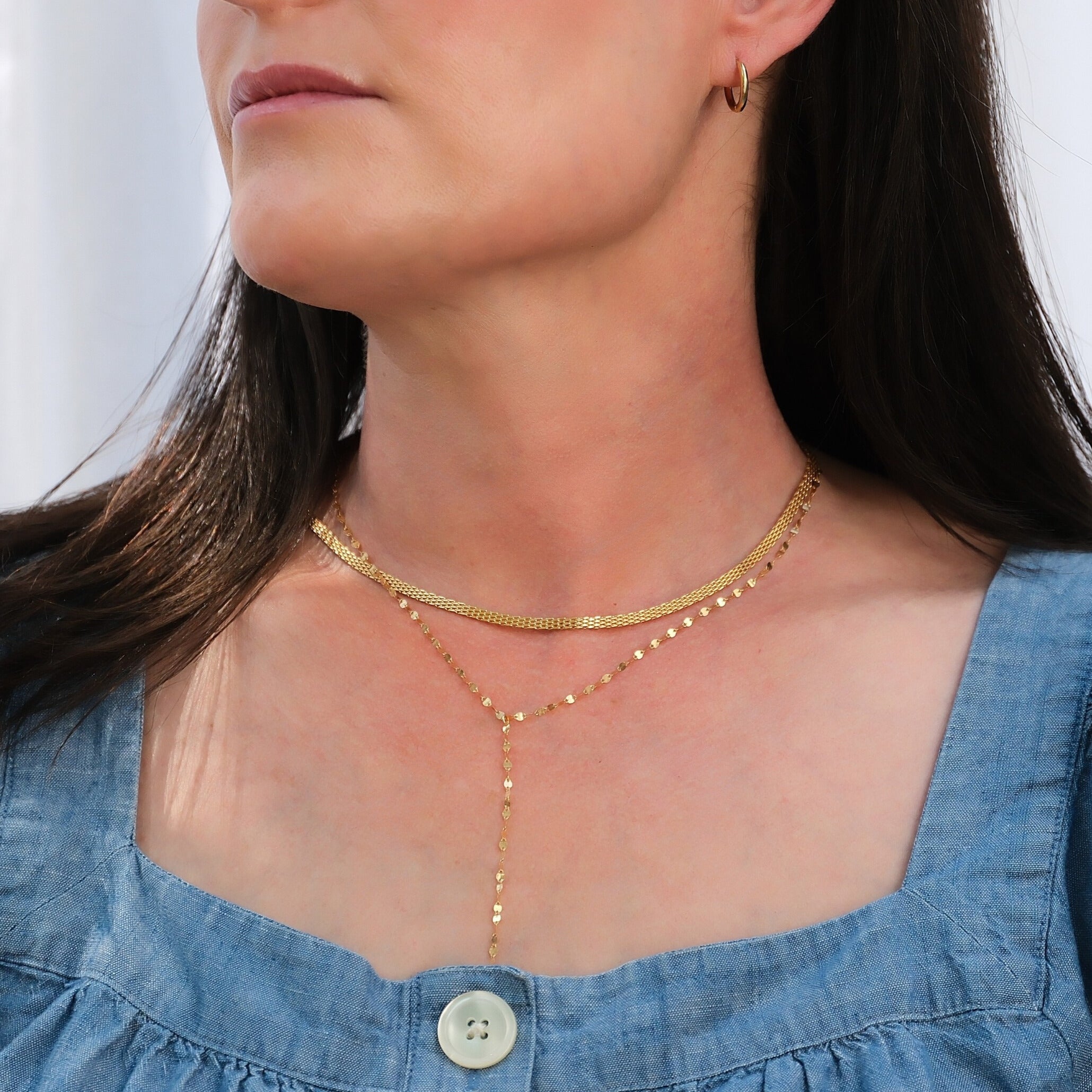 Our gold filled Mesh Necklace is a timeless statement piece featuring a soft, woven texture that drapes beautifully along the neckline. With its sleek, lightweight design, this delicate statement piece is perfect for dressing up a simple outfit or layering with dainty chains for added impact.